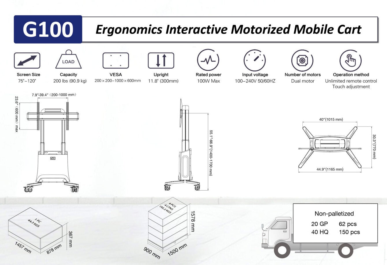 - Universal TV Compatibility: Fits most 75–120 inch flat screen TVs, smart boards, and interactive displays including LED, LCD, OLED; supports up to 90.9 kg (200 lbs) with VESA patterns from 200x200mm to 1000x600mm.