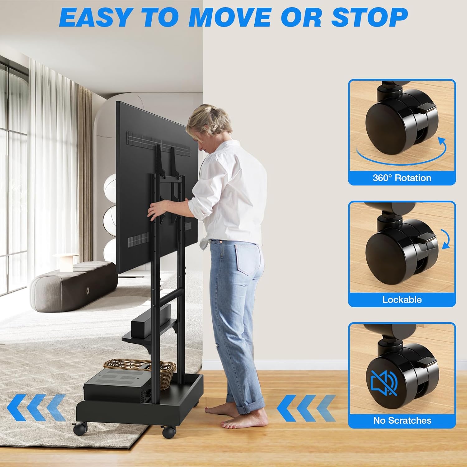 Heavy Duty Rolling TV Stand with Wheels for Most 40-86 Inch TV